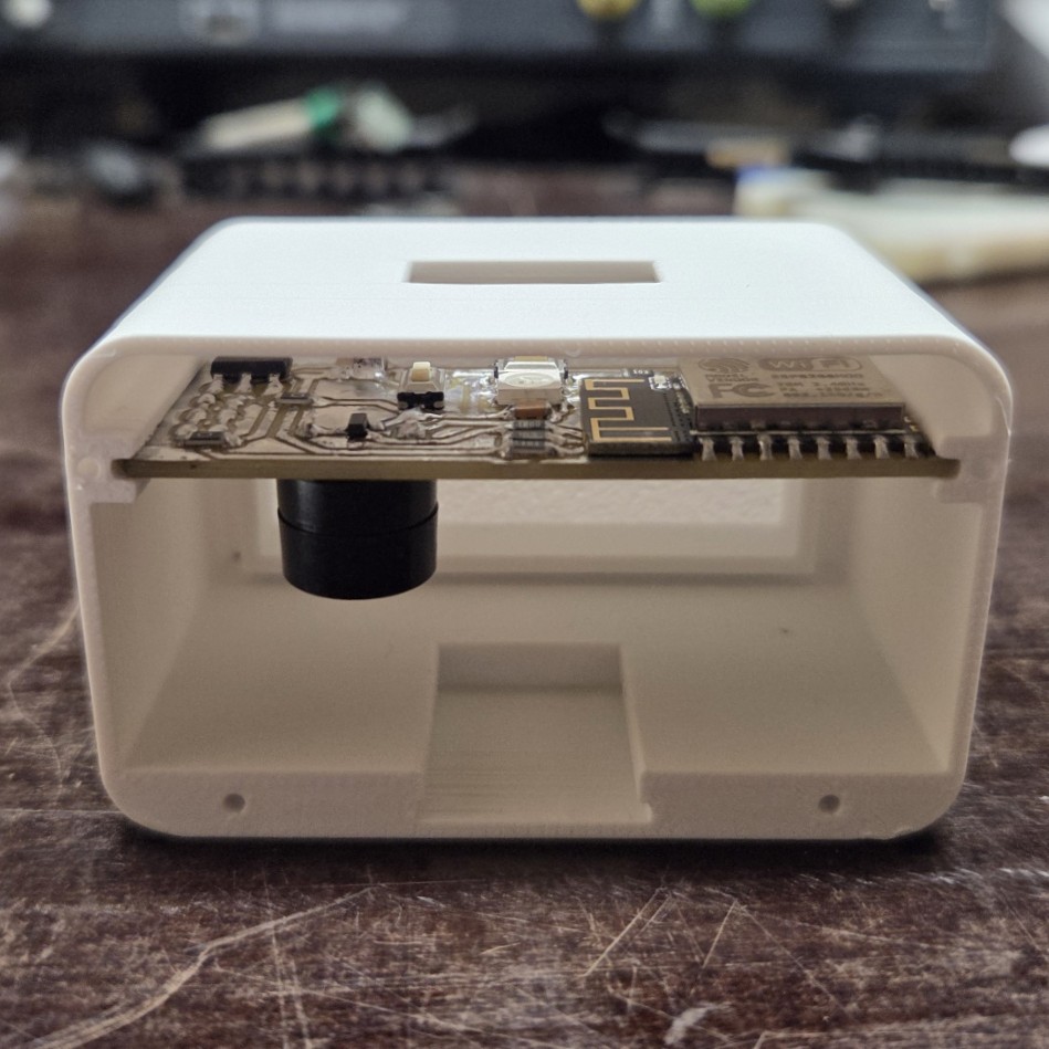 The PCB slides into a slot and is locked in place once the back cover is screwed on. This design made it easy to integrate the button and LED on top — I only needed a precise cut-out and a custom button cap.