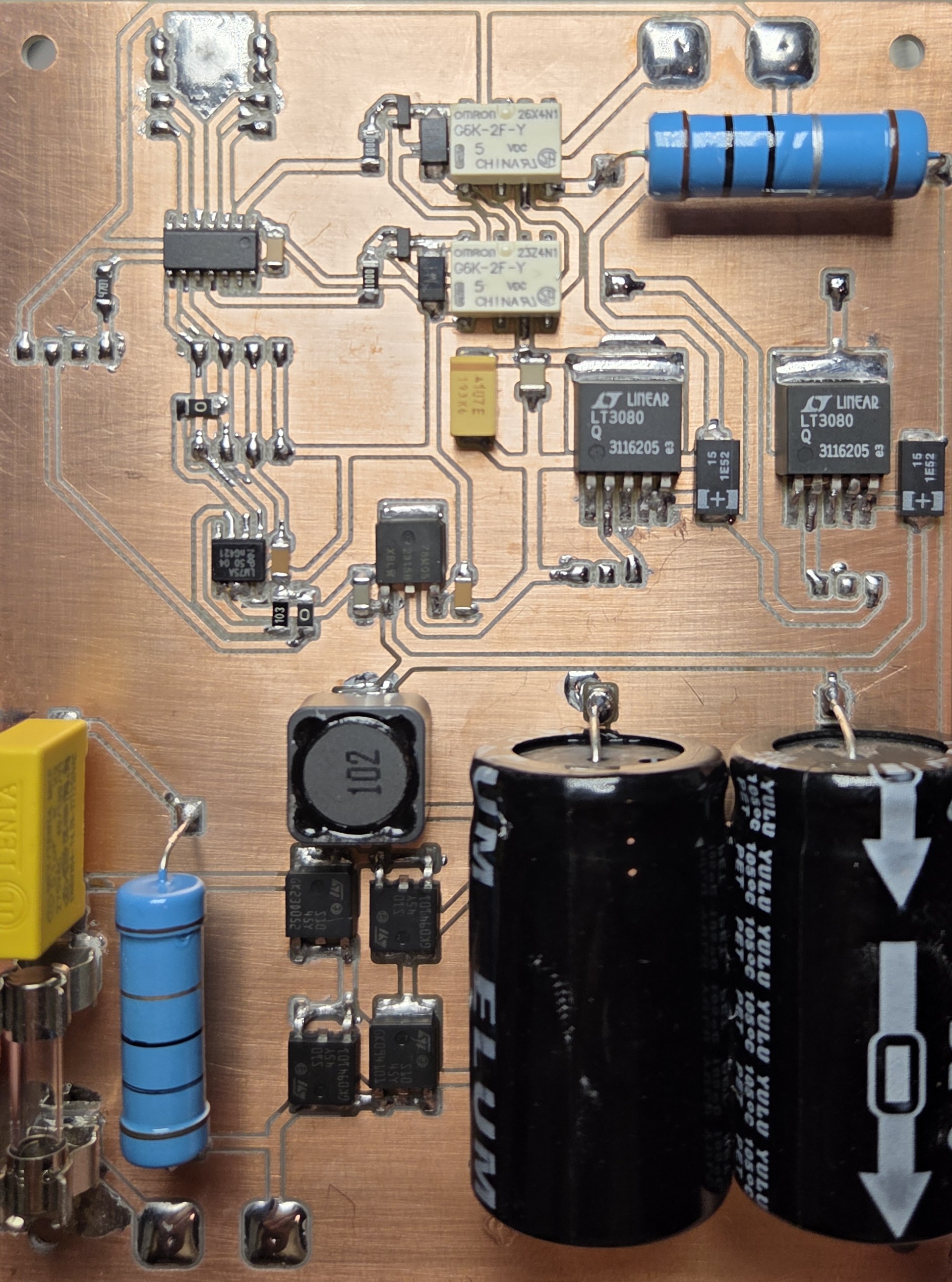 As I mentioned, the heart of the system is the Analog Devices LT3080 low dropout linear regulator, two of them: one for voltage, and the other for current regulation.